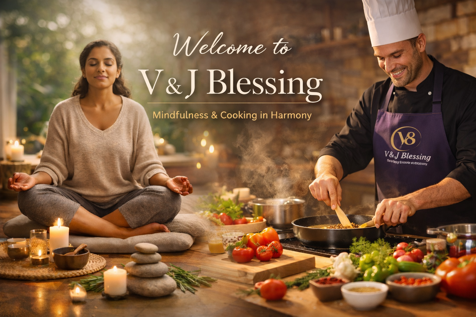 Created through the partnership of a mental health professional and a chef, V & J Blessing offers a carefully curated experience that nourishes both mind and body. Begin with a calming mindfulness session, then transition into an interactive cooking experience led by a chef of your choice.